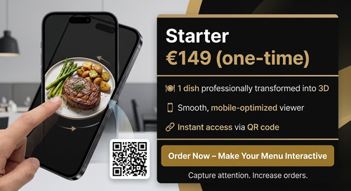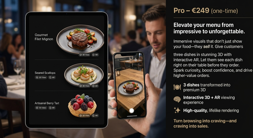 Give your customers an immersive dining experience. Let them view dishes in 3D and augmented reality before ordering — creating anticipation and confidence in every choice.